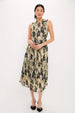 This elegant style boasts a high square neckline, a smocked bodice, and a cut-out detail at the back with criss-cross straps. Effortlessly elegant, we are styling it with neutral heels and gold accessories for dinner dates to cocktail parties and beyond.