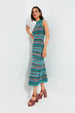 Refined yet impactful, the Agate Fauna Dress is spun from distinctive jacquard knit with a gorgeous fusion of waves and texture. This sleeveless stunner has a classic crewneck and undulating stripes in green, purple, and blue. It gracefully skims the body and falls to a midi length. Pair with strappy heels and a clutch for a striking event look!