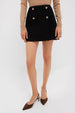 The Black Button-Front Frances Skirt features a faux wrap style with decorative gold-tone buttons and flattering straight silhouette. Pair with a sweater and boots for dinner with friends, or with a form-fitted long sleeve top and heels for a night out on the town.