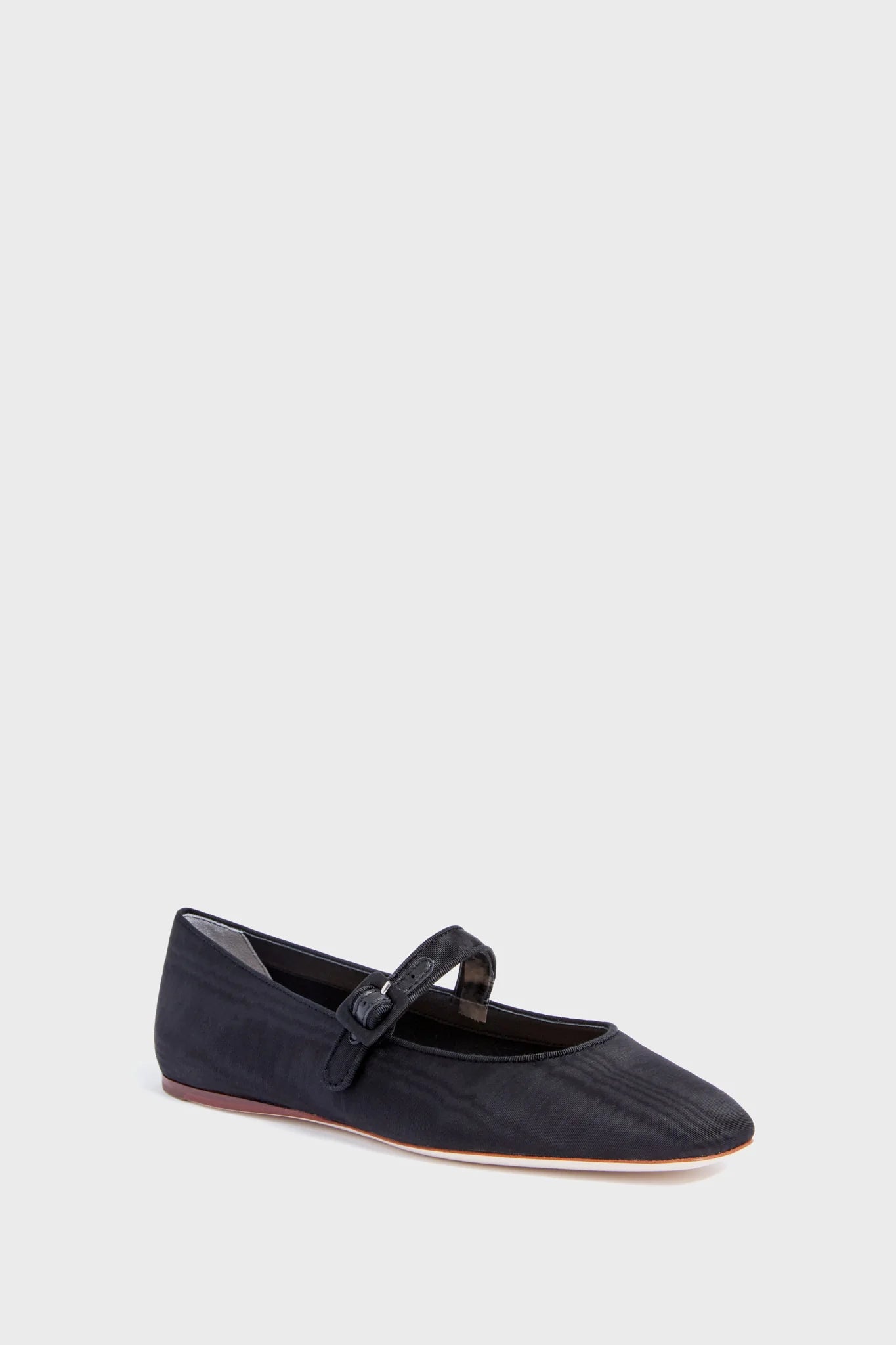 We love the Black Moire Ginger Flats for their versatility and delicate, feminine silhouette. A Mary Jane flat in black moiré with tonal piping, a padded leather footbed, and an almond toe- the elements of comfort and style will make this your new go-to shoe. Pair with everything in your closet from maxis, to LBDs, to denim.