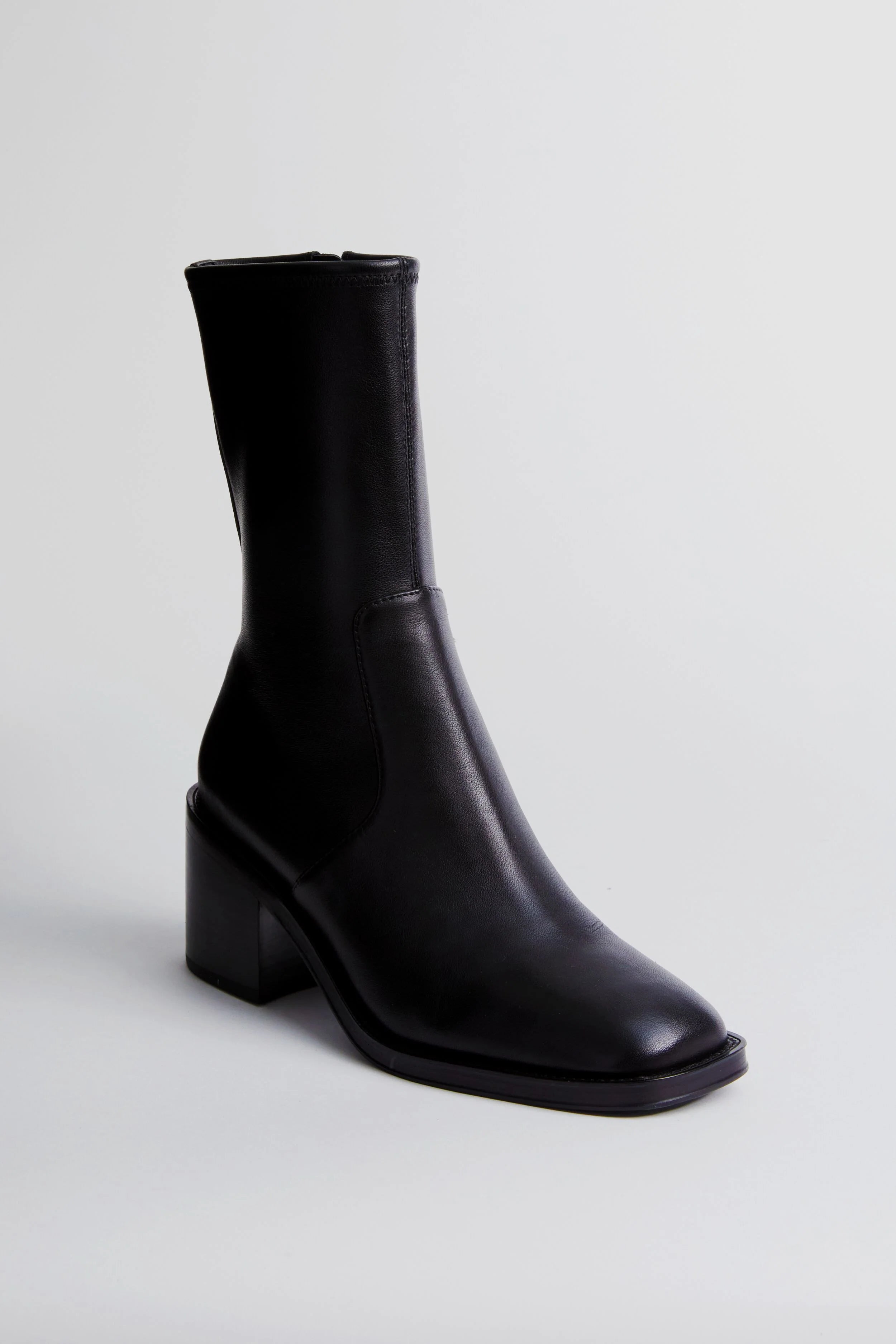 The Black Stretch Nappa Nolan Boots offer a sleek silhouette that ensures all-day wearability. Featuring a slightly squared off toe, a comfortable padded footbed, and a sleek block heel, these beauties have got you covered. Sure to be your go-to this season, we are styling these with dresses, denim, trousers, skirts, and more!
