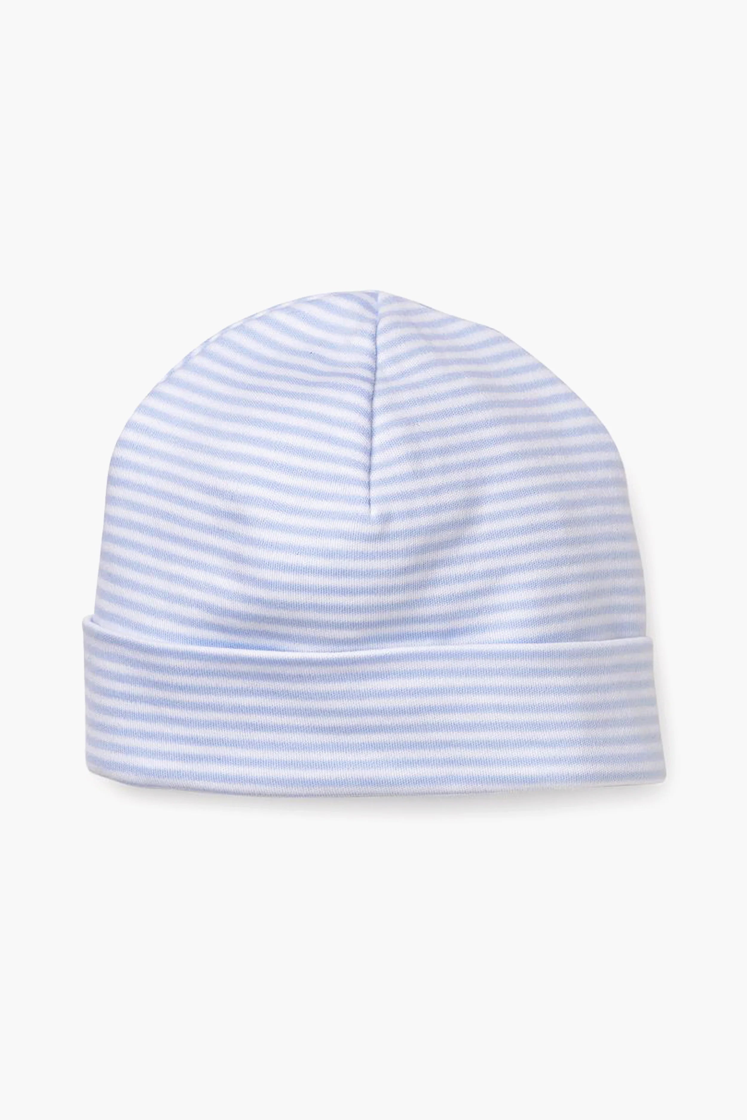 Keep your baby’s head warm and covered with the Classic Rib Hat. Made from 100% Peruvian Pima cotton for the softest and snuggliest fit, this easy design features blue and white stripes for a soft touch. Put it on your little one for outdoor walks on chilly days!