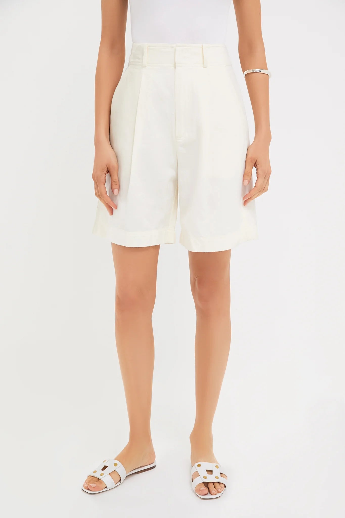 The Cream Bari Midi Short is an elevated and chic short. Inspired by full length trousers, this short features a longer length, barrel shaped leg, pleats, and hook-and-bar closure for elevated style. We paired them with a striped button down, sandals, and a handbag for an elevated warm weather look!
