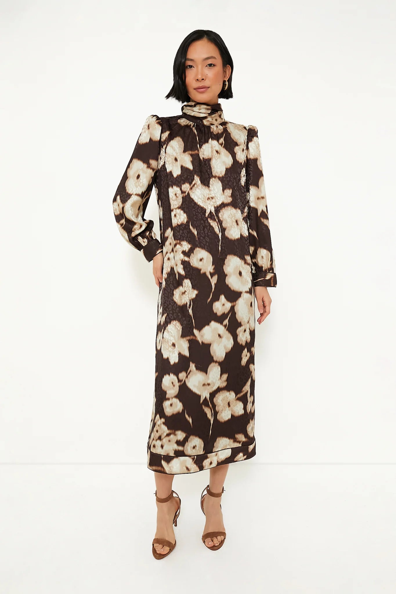 We are loving this Dappled Hollyhock Faven Dress for its ease and elegance. The lightweight, silky fabric allows for ultimate comfort while the floral pattern and gathered turtleneck adds exquisiteness. This will be your go-to dress for everything from work meetings, to dinner parties, to weddings- pair with your favorite heels and gold hoops and you are ready to go!