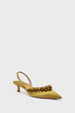 Introducing Trent - a pointed-toe menswear-inspired slingback. This pair stands out with a floral eyelash-trim and a flirty mini kitten heel. The Trent is eye-catching, sophisticated, and sure to elevate your closet. Pair with an LBD and gold jewelry for date night or throw on with wide leg denim and a button down to dress up and everyday outfit.