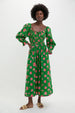 Screen-printed by hand in vibrant shades, the Hampi dress is an effortless addition to any wardrobe. With an adjustable, open neckline, elasticated details under the bust, and delicate pink ric-rac finish elevates this midi. Looks great paired with sandals for a beach holiday or trainers for a city break with friends.