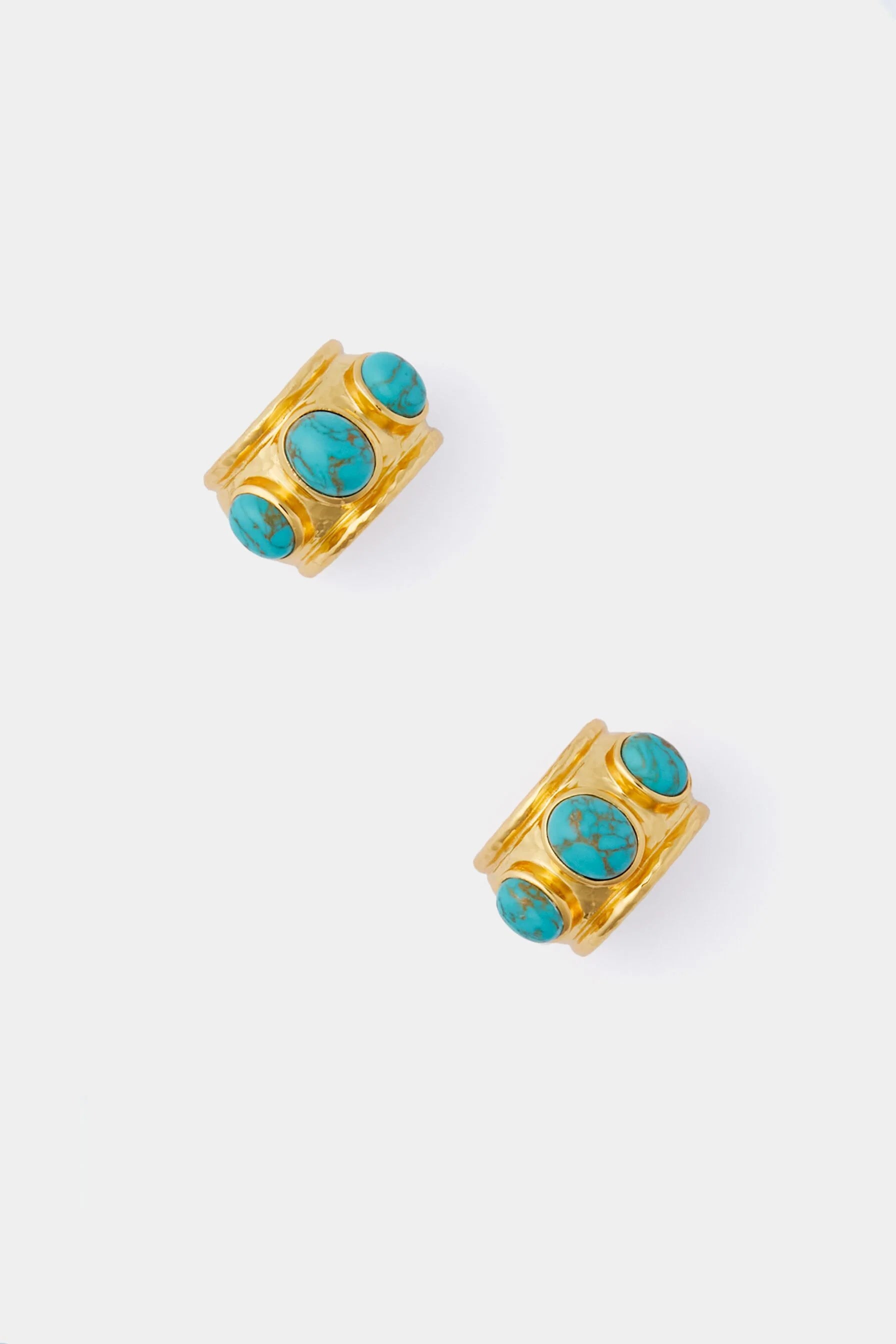 Elevate your look with the Golden Turquoise Nova Earrings, a clip-on that is equal parts sophisticated and playful. Made from 24k Gold Plated Brass that is decorated with vibrant turquoise stones, these blue beauties are sure to turn heads. Wear from the beach to the bar and everywhere in between!