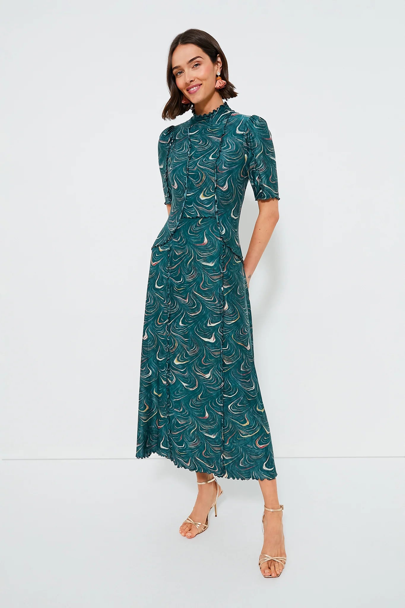 The Green Amara Marble Print Long Sleeve Dress is like nothing your closet has ever seen before! An elevated midi, this style boasts ballerina-length sleeves, ruffle detailing throughout, and an eye-catching marble print that boasts alluring swirls of greens, reds, and oranges. Pair with neutral heels and drop earrings for an elegant look that is perfect for date nights and cocktail parties.