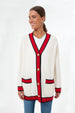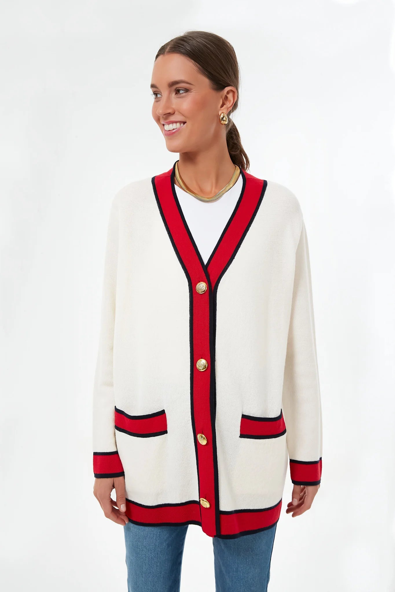 A chic update to the effortless 'I stole my grandfather's cardigan' look, the Lauren combines a cozy oversized fit with feminine tailoring in a not-too-light, but not-too-heavy wool for the ideal layering piece. Detailed with gold crest buttons, two-tone contrasting colors and deep front pockets, this is the perfect combination of relaxed yet put-together.