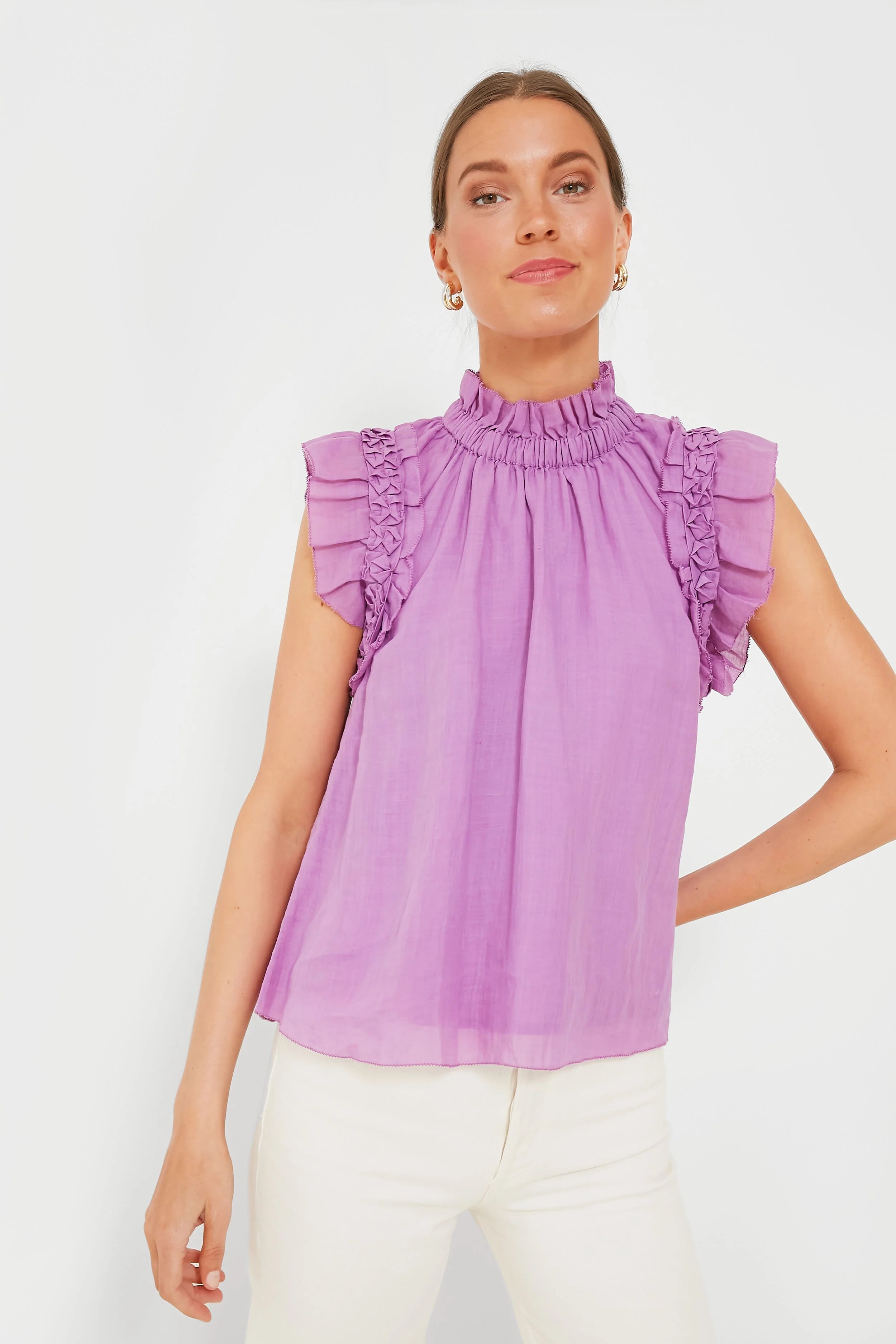 Just add light wash denim and sandals for an effortless and breezy summer look, meet the Lavender Micah Solid Ramie Tank Top. This flirty blouse features flutter caps sleeves and beautiful hand-tucked detailing with an easy, relaxed body. From winery visits to casual park picnics we are wearing this lightweight silhouette on repeat this season.