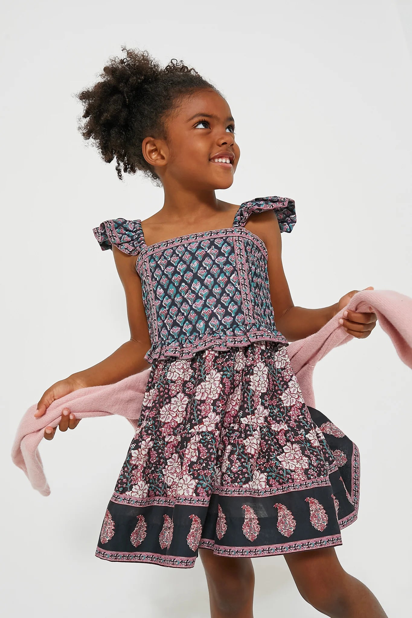 There's nothing more cuter than the Multi Donna Print Flutter Sleeve Smocked Dress. Crafted from high-quality soft cotton, this mini features flutter sleeves, square neckline and a tiered silhouette. Co-ordinate with the Ladies Exclusive Donna Print Tunic Dress for a cute mommy and me matching outfit, or complete with ballet flats and a headband, and know your little one will be looking their best for school picture days or family dinners!