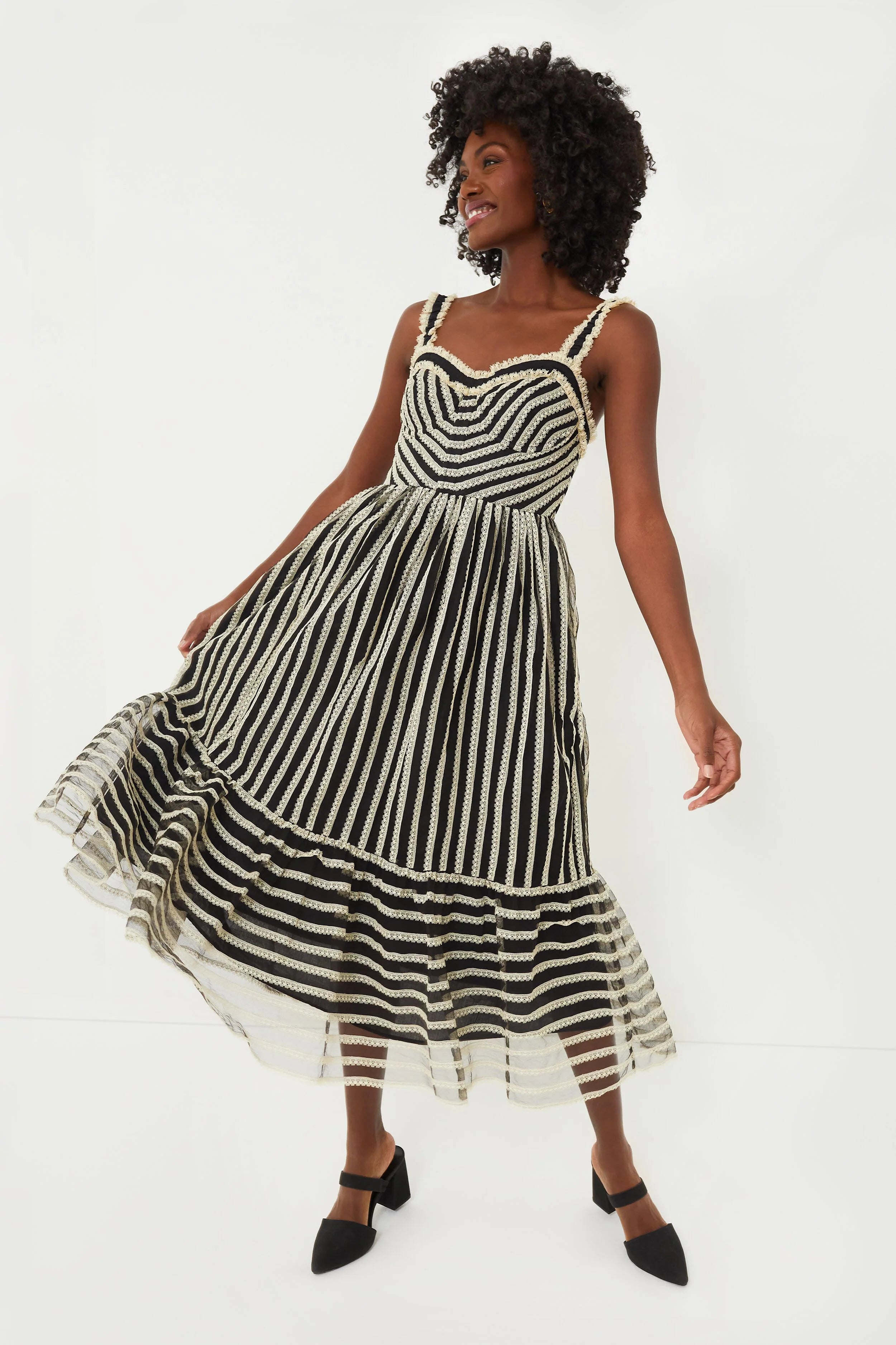 Be the belle of the ball in the Verona Dress! This gorgeous number is sure to make you the center of attention with its corset style top, ruffled straps, and a full twirl-ready skirt. Whether it’s a cocktail party or a black tie, this midi is the perfect pick. Add heels, clutch and statement earrings, then get ready to dance the night away.