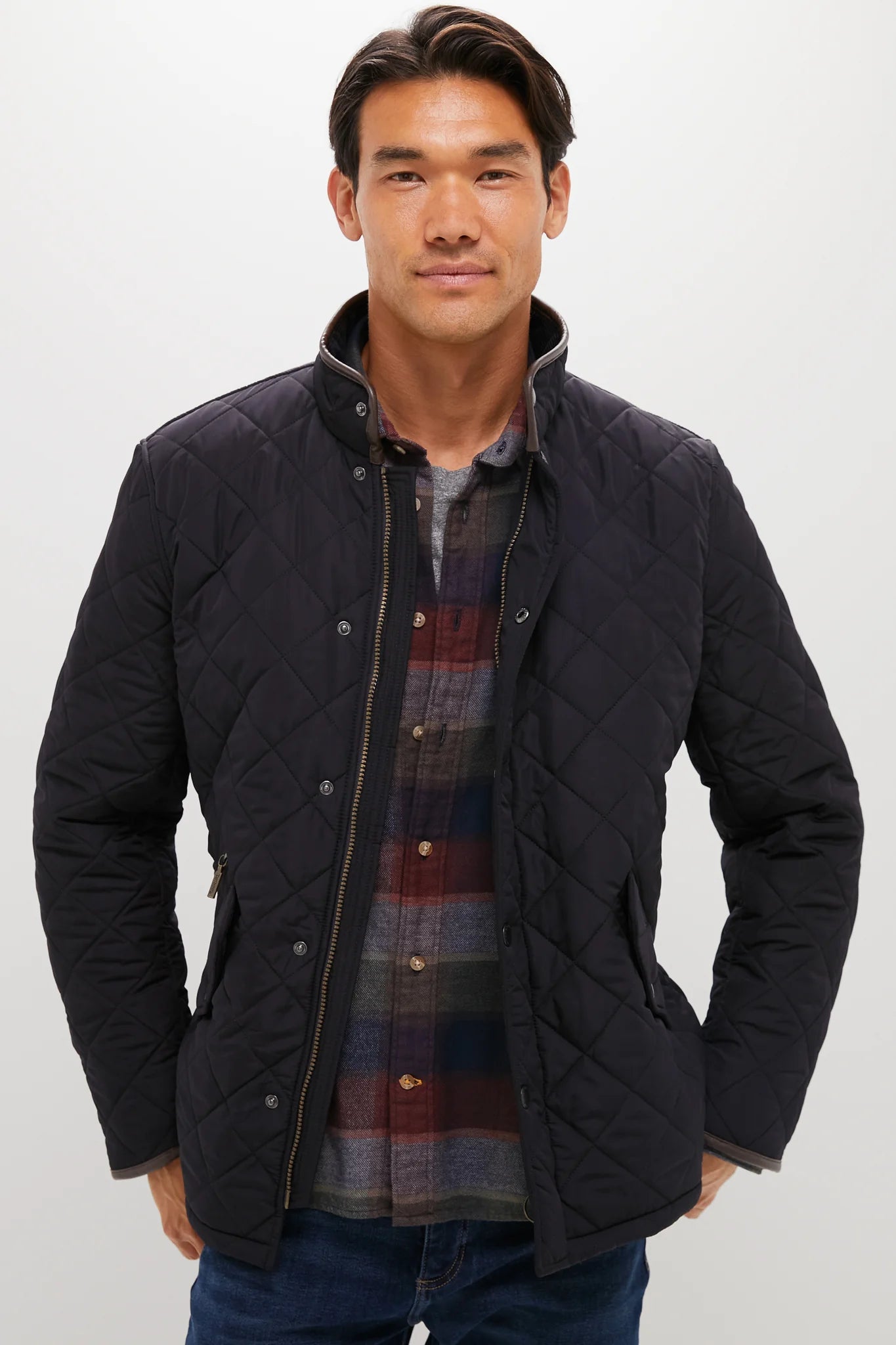 Featuring sleek diamond quilting, a leather-trimmed stand collar and cuffs, and a front zip with a snap placket, the Powell Quilted Jacket is timeless and practical for cool weather. Lightweight yet warm, this easy outer layer will take you everywhere from brisk walks to sporting events in style. Wear it over a tee with sneakers for off-duty weekend looks, or over a sweater with a beanie as the temps drop.