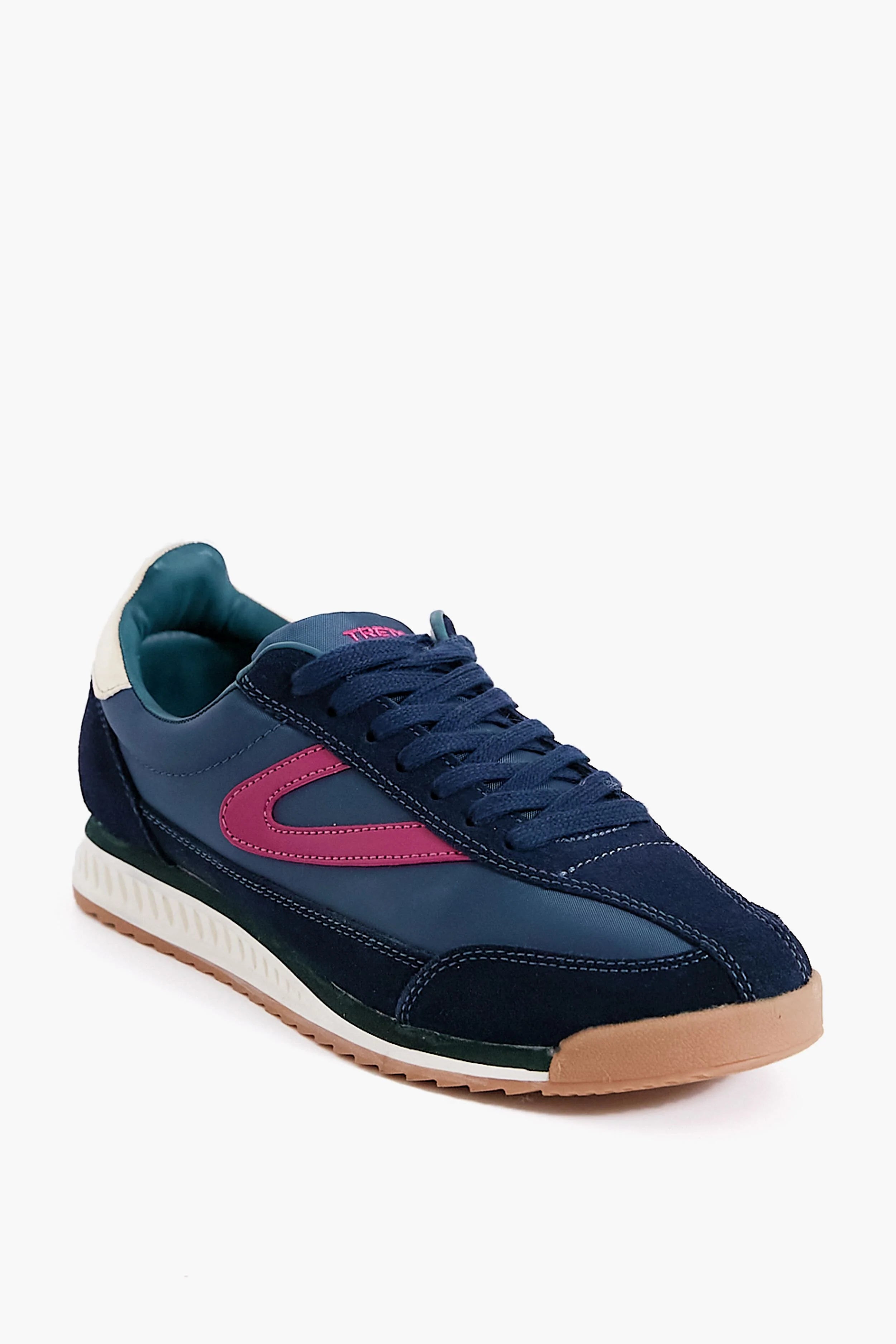 A nod to Tretorn's heritage, the retro-inspired Navy Rawlins 2.0 Sneakers are sporty yet laid back in a classic deep blue hue. Featuring a leather upper, maroon suede overlays, and a rubber outsole, these shoes are comfortable yet trendy. Pair with loungewear for an elevated casual look that will take you from the gym to errands, or with a basic outfit for a pop of color!