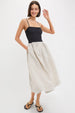 The Oatmeal Mael Dress is a blocked linen spaghetti strap midi featured a stretchy jersey smocked bodice and a full skirt. Easy and timeless, we are throwing this on with sandals and a tote for all of our weekend activities.