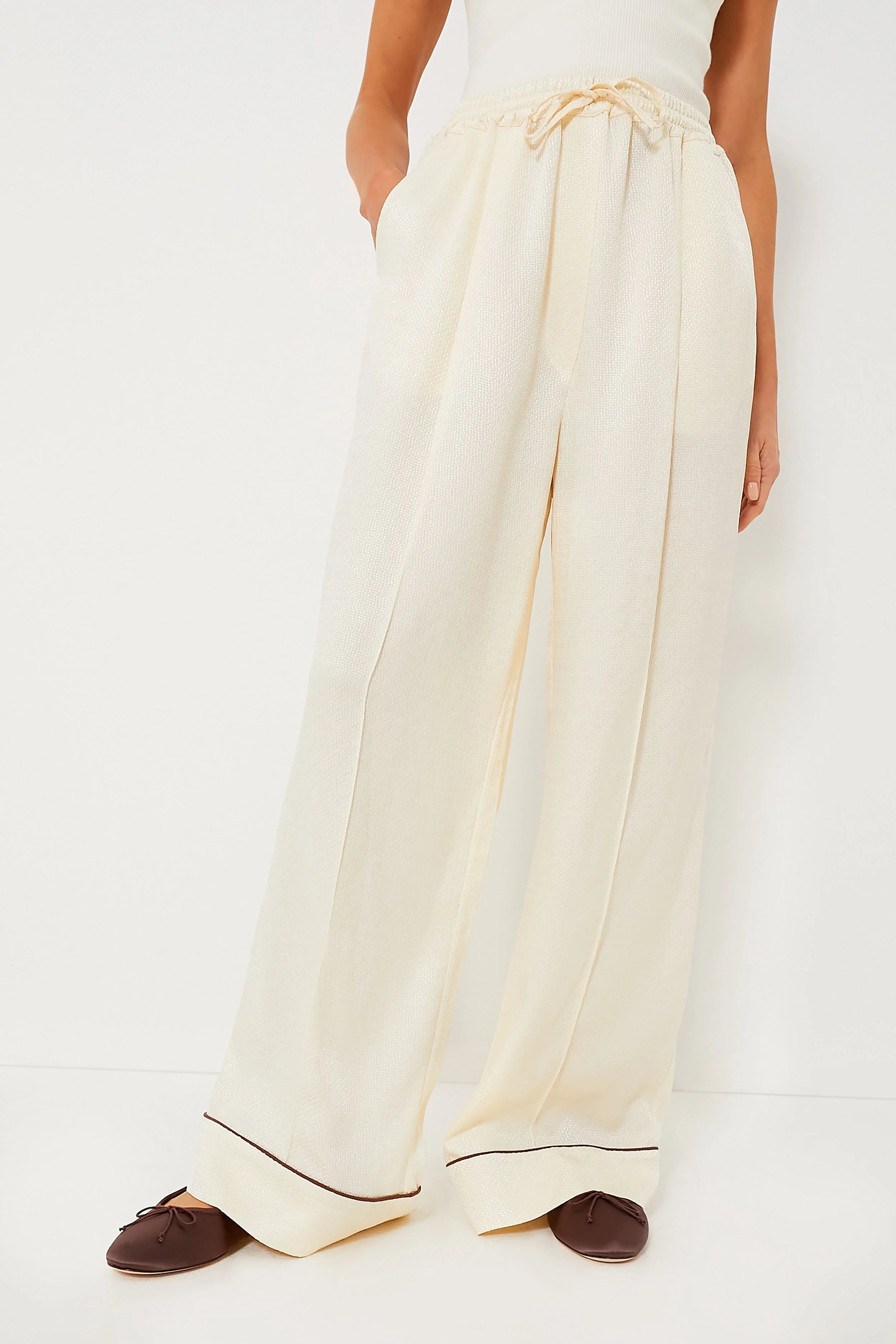 Keep cool while you sleep this season with the stunning Pearl Pastelle Oversized Jaccard Pants, crafted in soft premium jacquard with a woven texture and subtle sheen. The contrast piping and vertical stitching add an element of sophistication while the elasticated waistband and loose fit mean ultimate comfort when it’s time to count those sheep. Wear with the Pastelle Oversized Jacquard Shirt for a matching set.