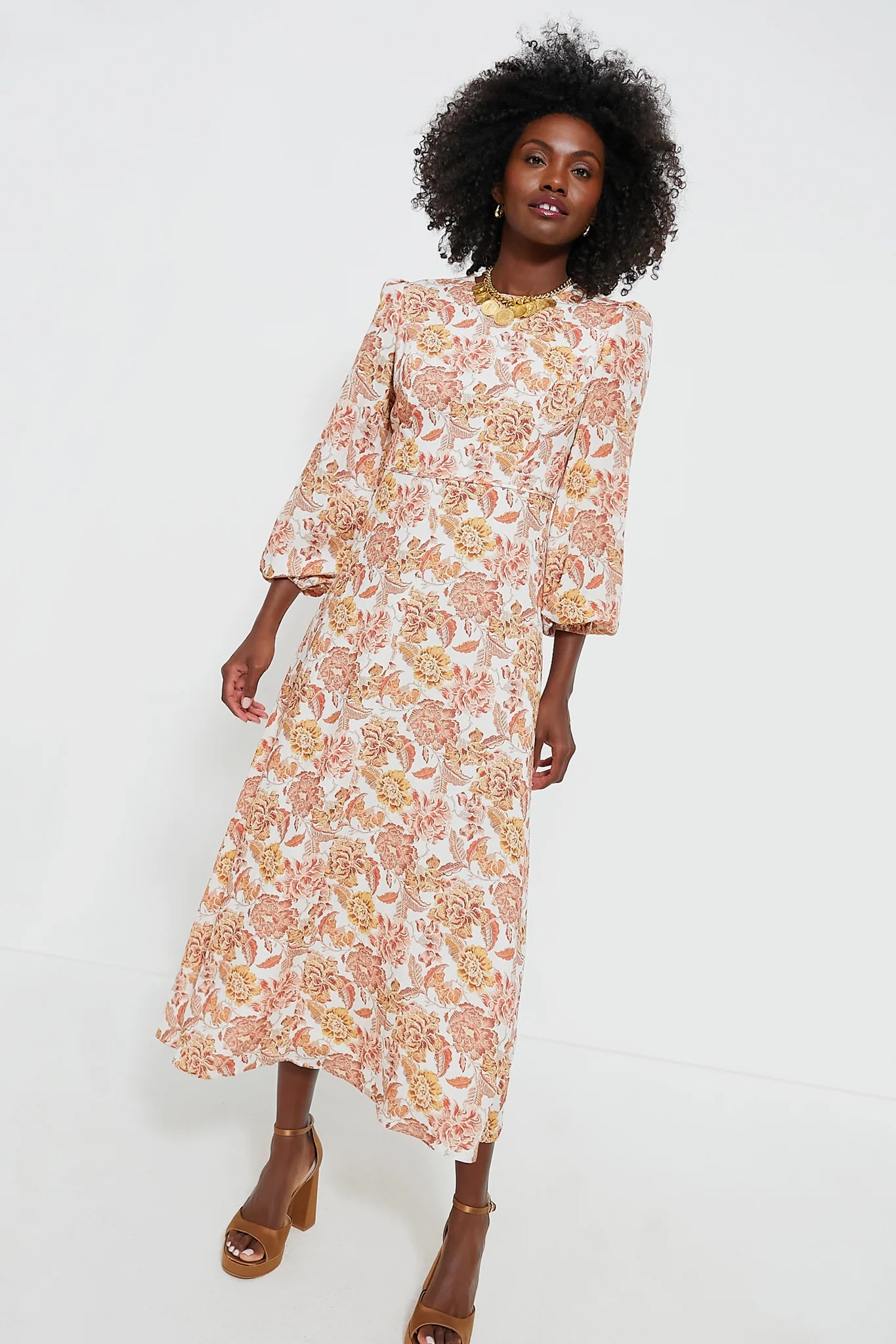 Make an elegant entrance in the Saffron Floral Sophia Dress. This maxi exudes femininity with its subtle balloon sleeves, flowy A-line silhouette, and delicate botanical pattern. Perfect for a wide array of occasions, style with a clutch and heels for a wedding or with a belt and western accessories for a winery visit!