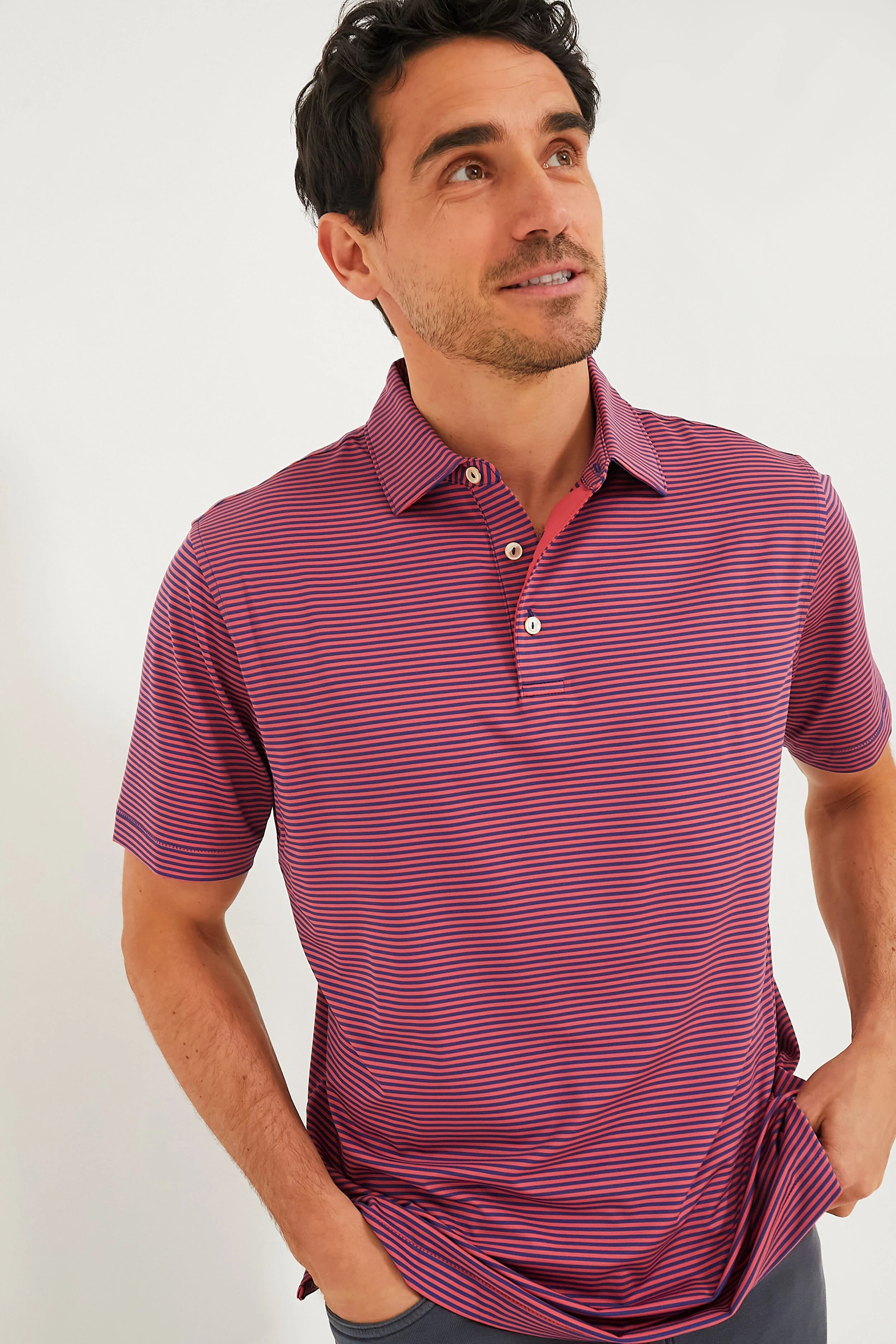 A great on-the-go style that performs well for any activity, the Sport Navy Red Hales Performance Jersey Polo checks all the boxes. With antimicrobial jersey fabric that provides moisture-wicking, UPF 50+ sun protection, and easy-care benefits, this shirt works well for business and pleasure. Pair with shorts and sneakers for a casual look, and dress it up with slacks for dinner with friends.
