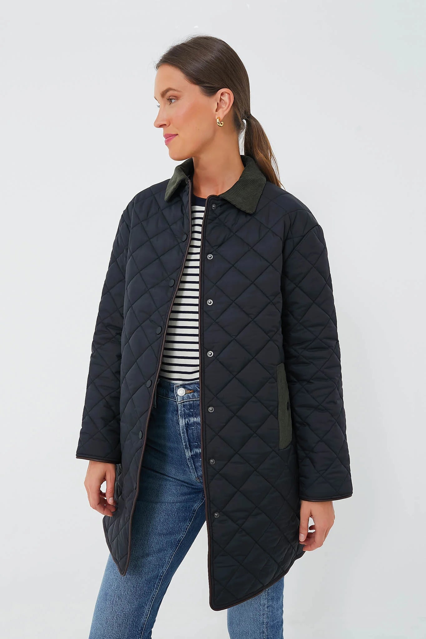 The ultimate outer layer, the Black Georgie Jacket is super cozy and comfy. With a corduroy collar, a snap front placket, and a diamond quilted texture you're sure to love wearing on repeat, this is about to keep you warm all season long. Layer it over a striped tee and denim, or a chunky turtleneck and leggings for a chic look perfect for everything from dropping the kids off at school to exploring the city.