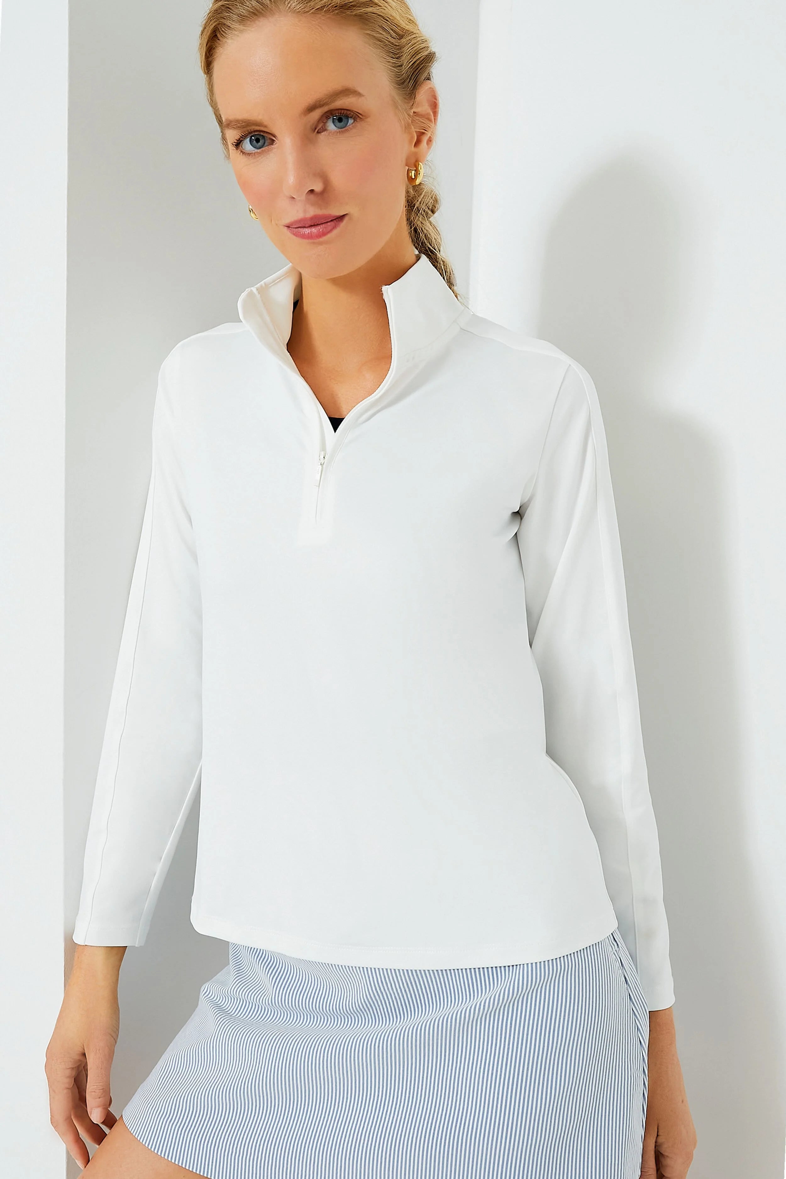 Be as sleek and chic as Karlie Kloss in the White Carver Quarter Zip, perfect to wear to pilates or throw over your shoulders on a flight.