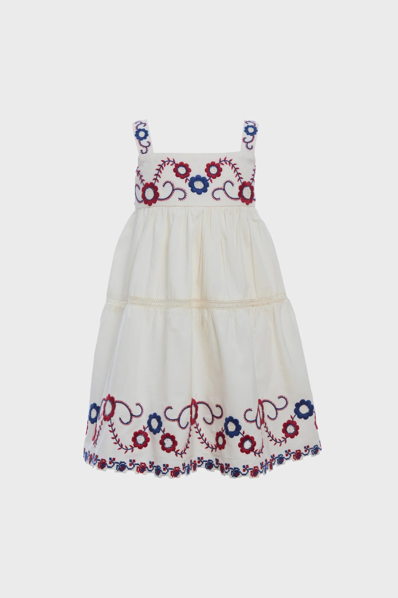 The White Soren Sleeveless Dress is a girly, graceful style. With adjustable shoulder straps, an eye-catching floral embroidery, and a flowy silhouette, this adorable frock is comfortable and perfect for day-long wear. Pair with the Cream Multi Soren Embroidery Dress for a sweet Mommy-And-Me look!
