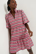 The beloved Crawford style is back in a Zigzag Knit Stripe that's easy to style three seasons a year. This mini features oversized flutter sleeves, ruffle detailing on the neckline and skirt, and a swing silhouette that makes this the most flattering flirty frock. Effortlessly whisking you from work to play, pair with sneakers and sunnies for a casual look and style with heels and statement earrings for an easy date night outfit!